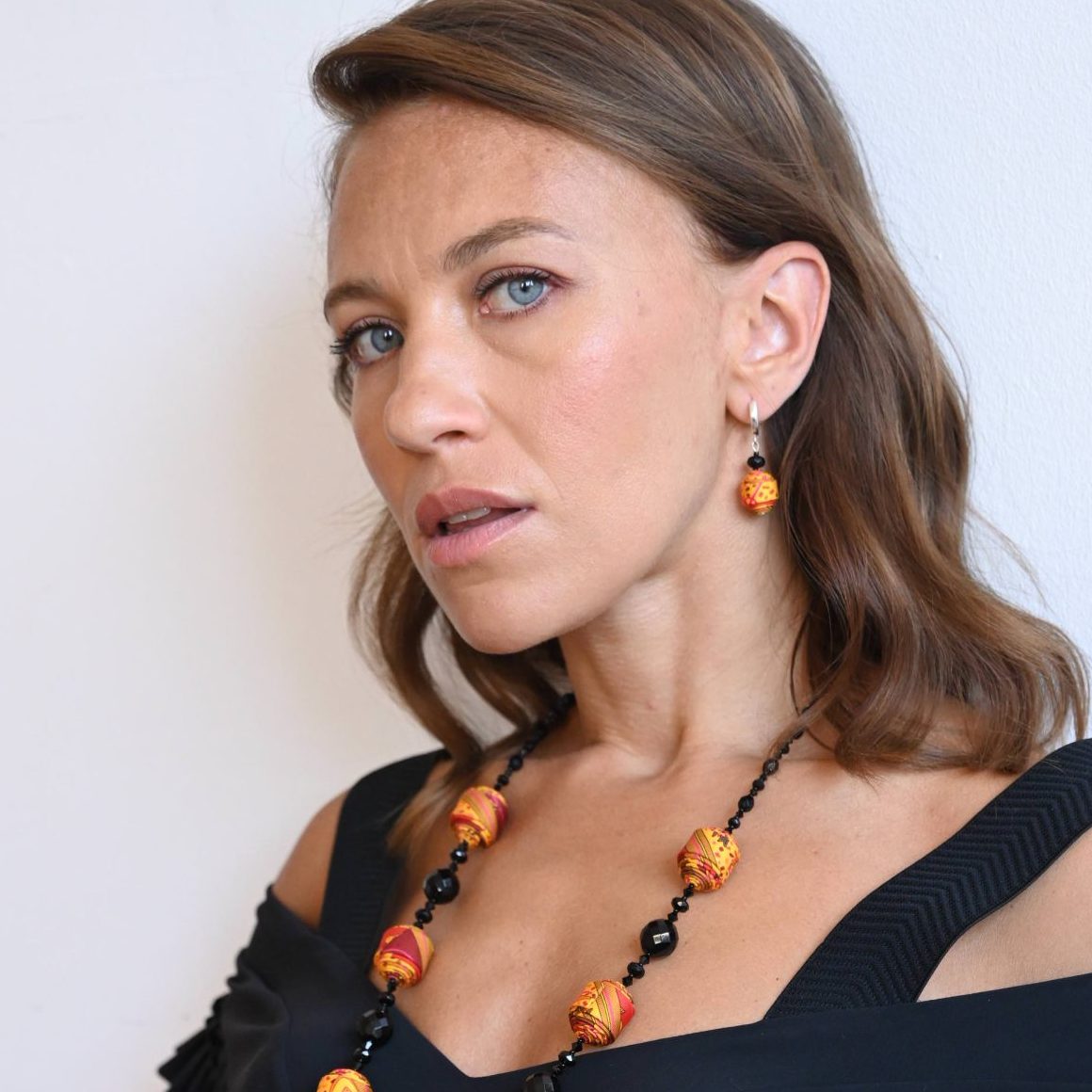 • Perles de soie créées avec une cravate en soie Jean Charles de Castelbajac
