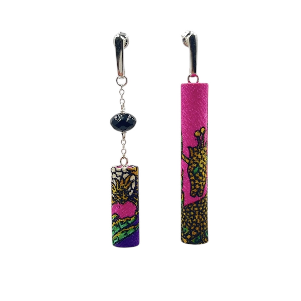 D’un côté, une baguette de soie élancée, de l’autre, sa miniature en suspension répond aux délicats reflets d’une perle de cristal. Des boucles très stylisées évoquant la légèreté des mobiles de Calder pour contrer la routine et rendre chaque jour plus original.