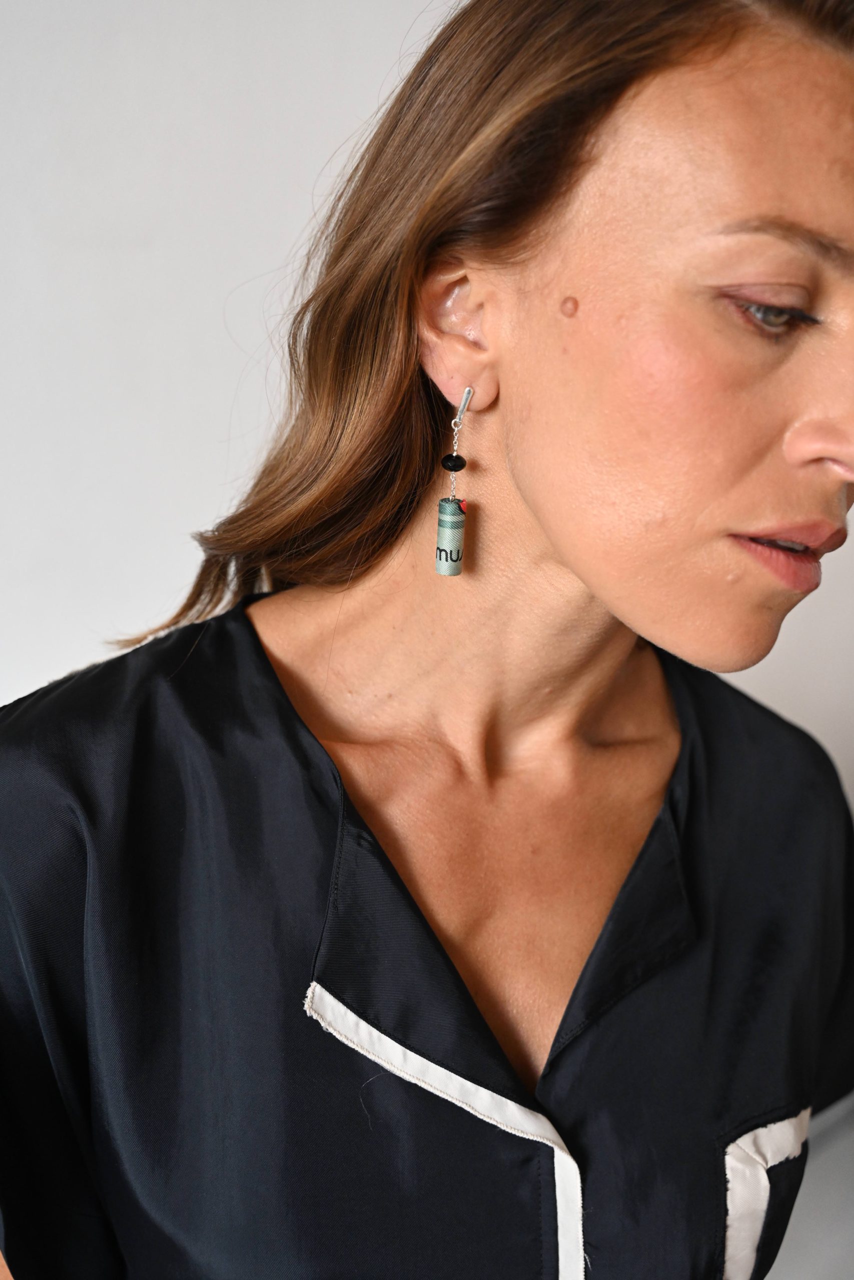 Des boucles d’oreilles asymétriques, élégantes et résolument contemporaines.
