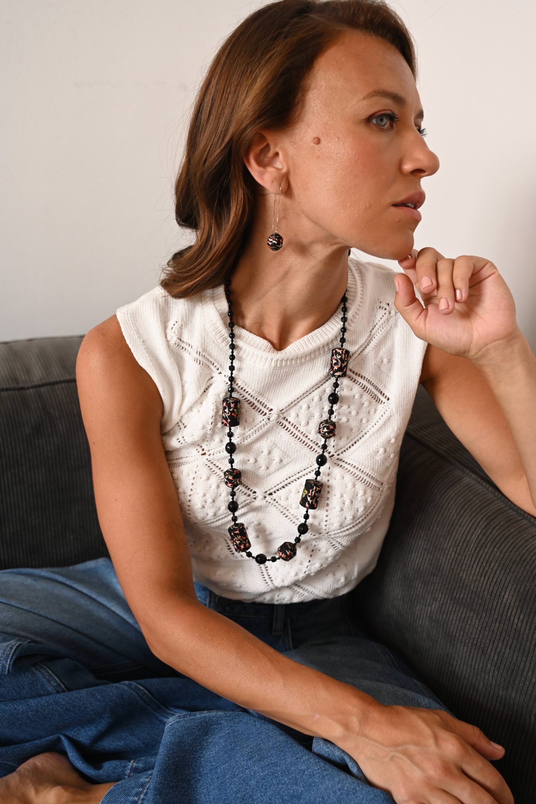 • Perles de soie créées avec une cravate en soie Nina Ricci