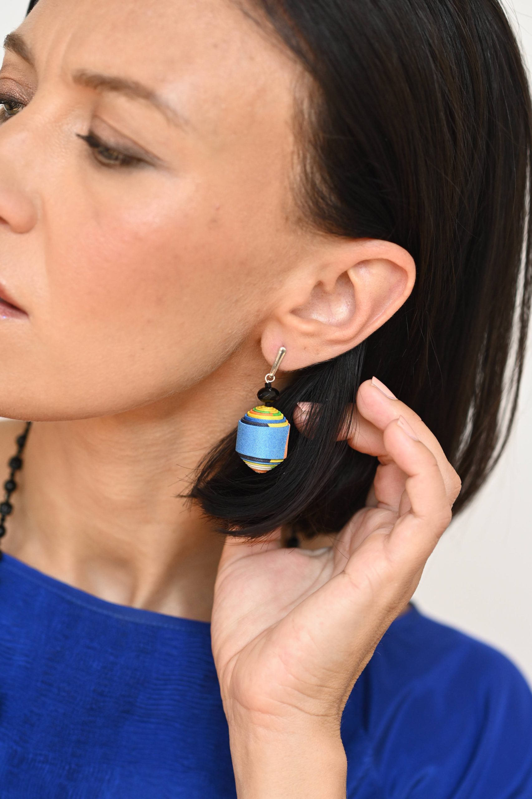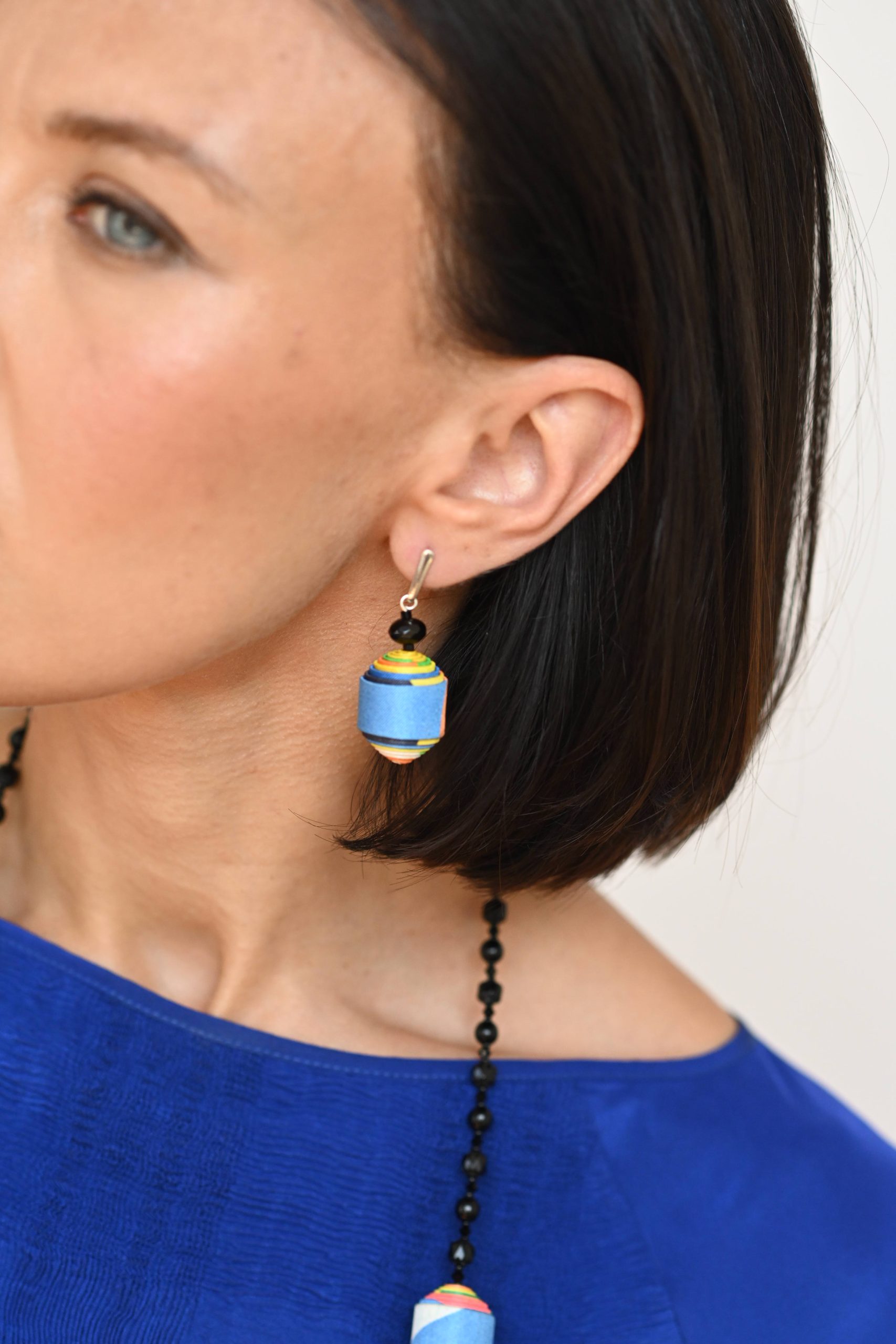 Exquises, ces créoles dormeuses apportent une touche moderne à votre style. L’éclat de la perle de cristal ajoute une dimension artistique au bijou ; une évocation pleine de délicatesse, véritable « fil harmonie » entre la soie et la gaité des couleurs