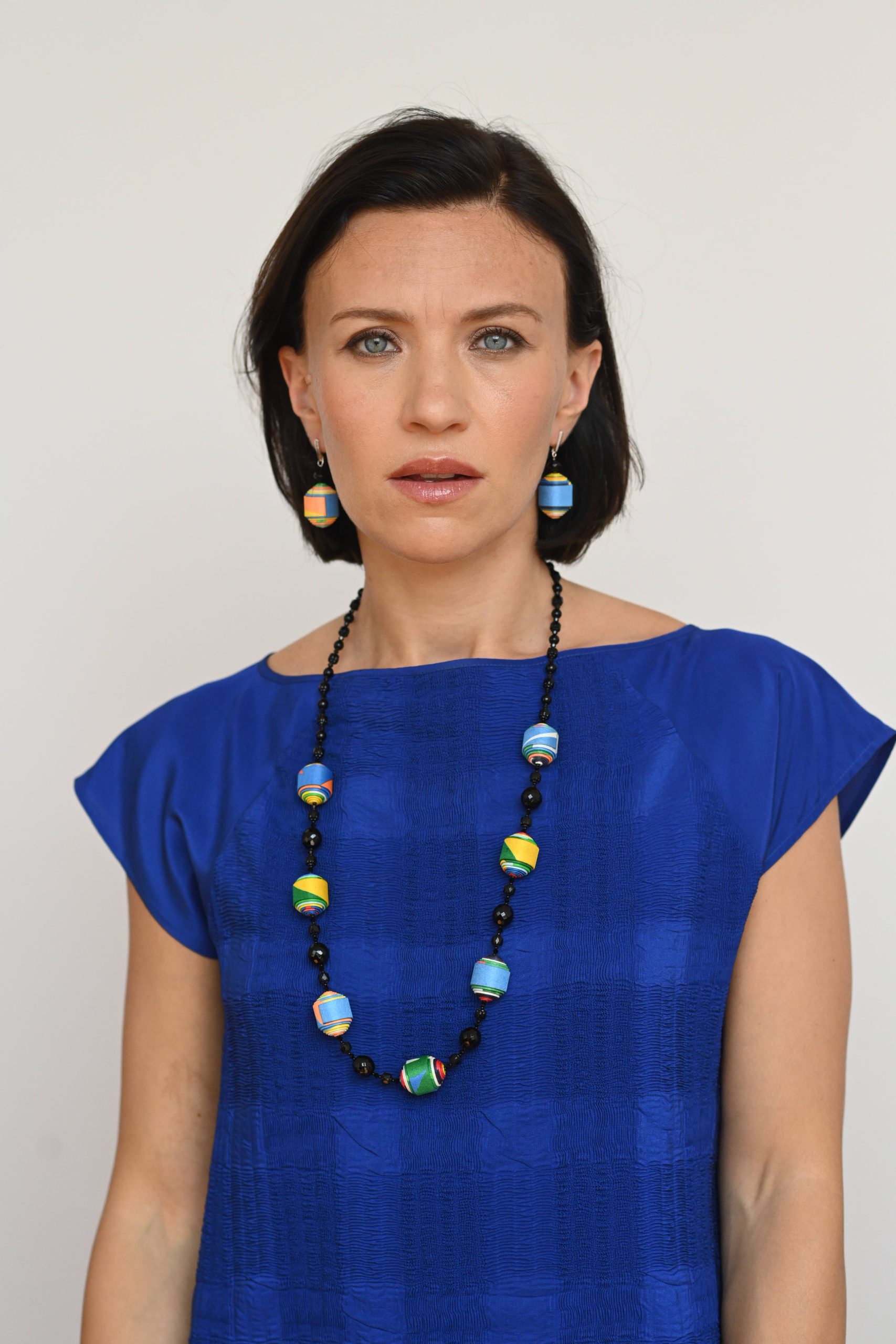 • Perles de soie créées avec un foulard édité par la maison de soieries AmesSoeurs. Une création en collaboration avec l'artiste Piment Martin.