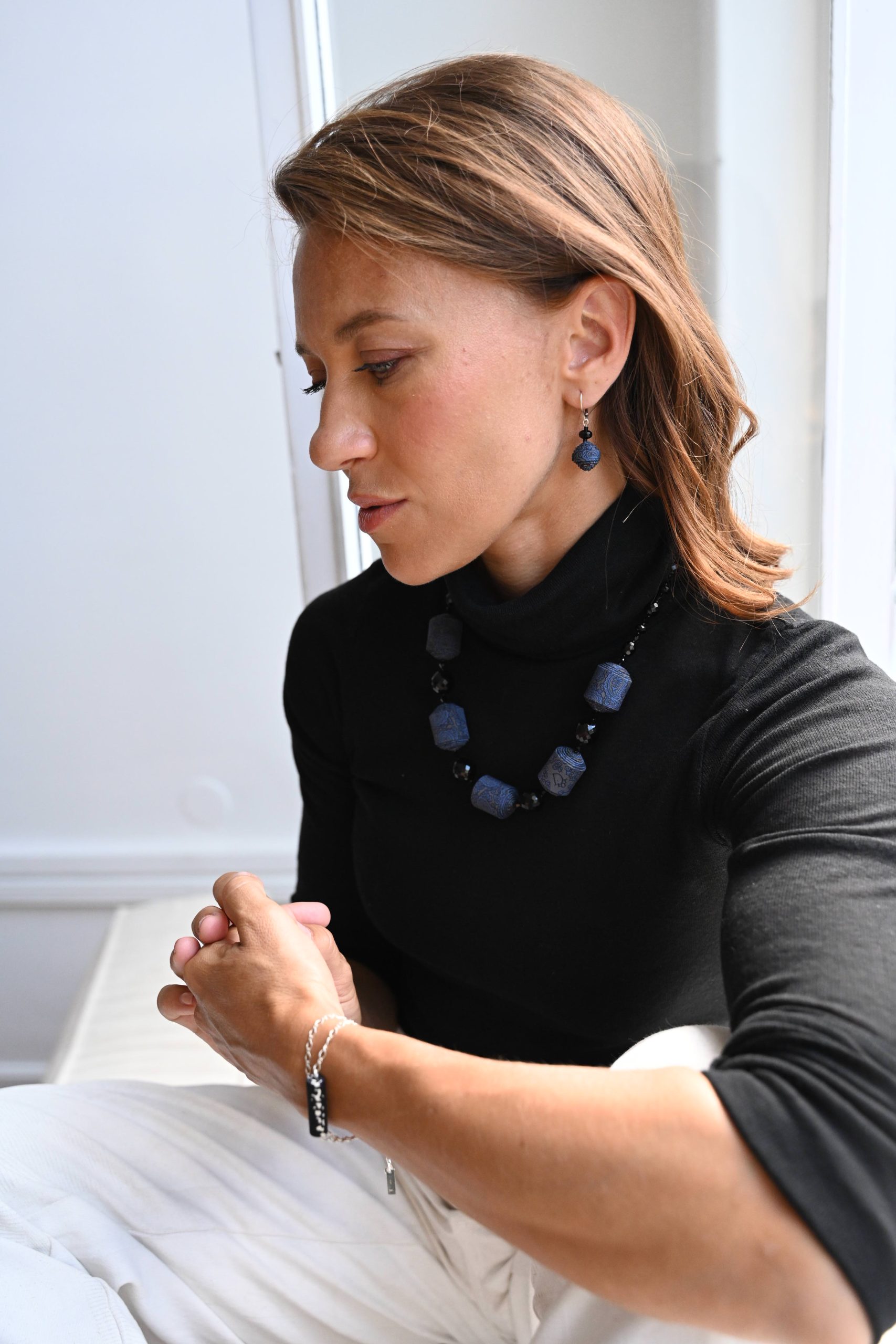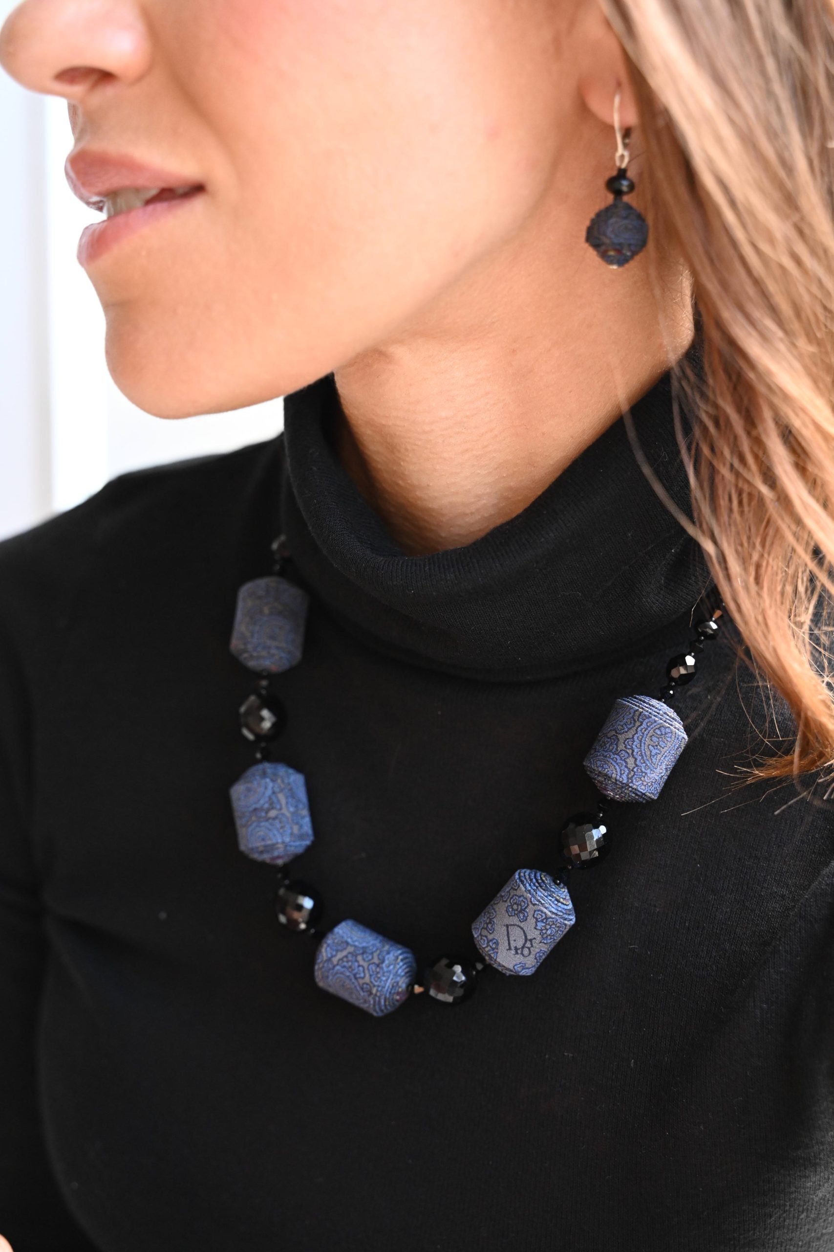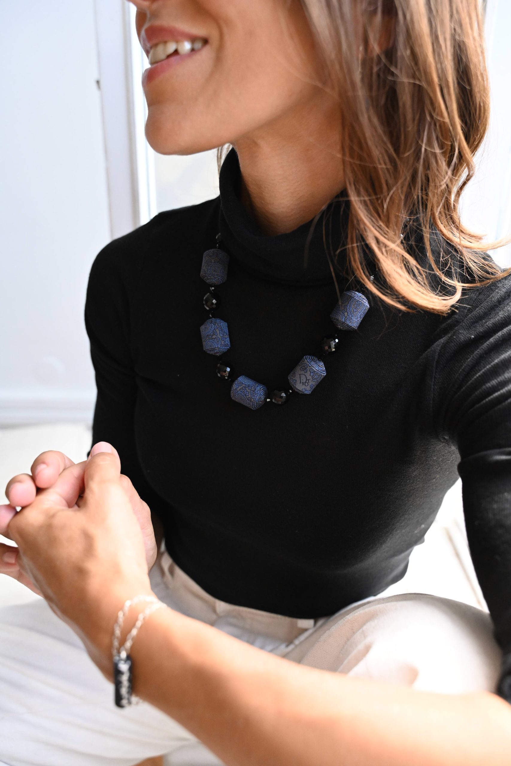 • Perles de soie créées avec une cravate en soie Christian Dior