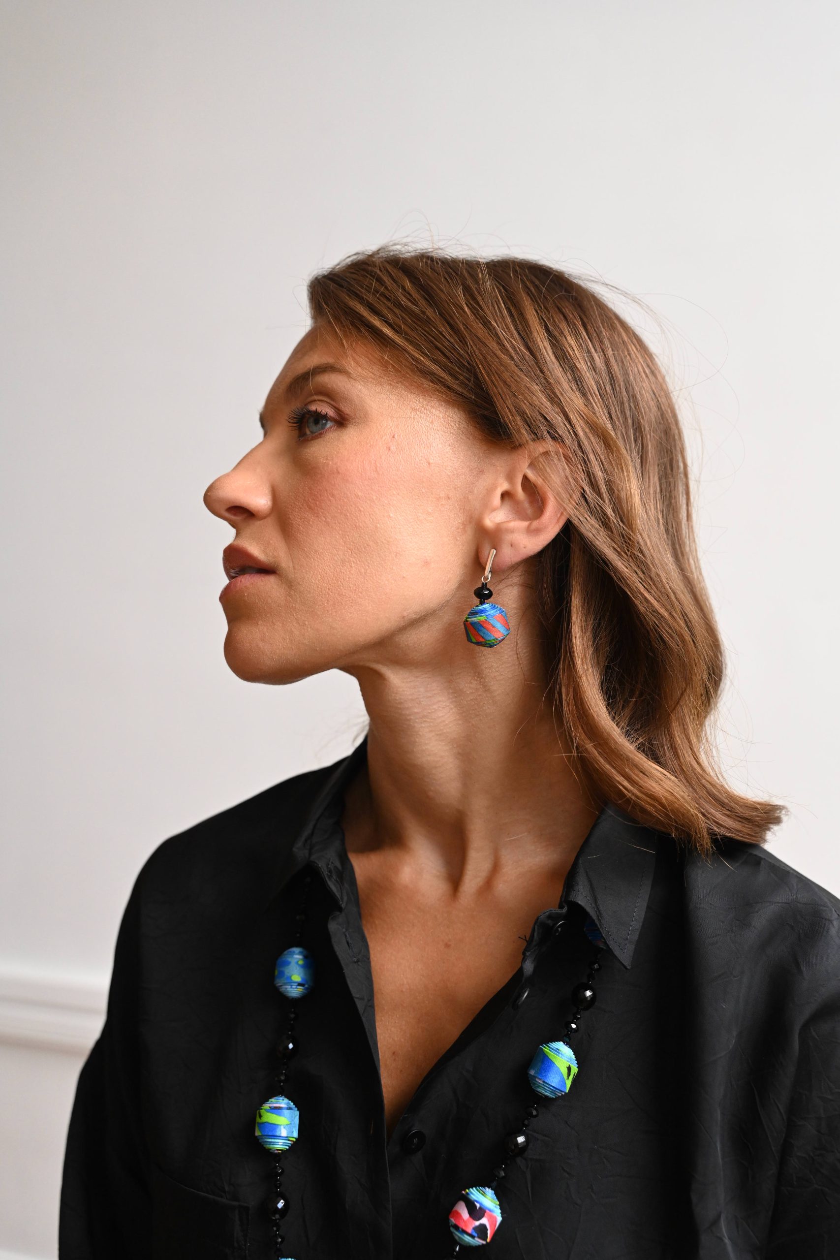 • Perles de soie créées avec un carré de soie AmesSoeurs