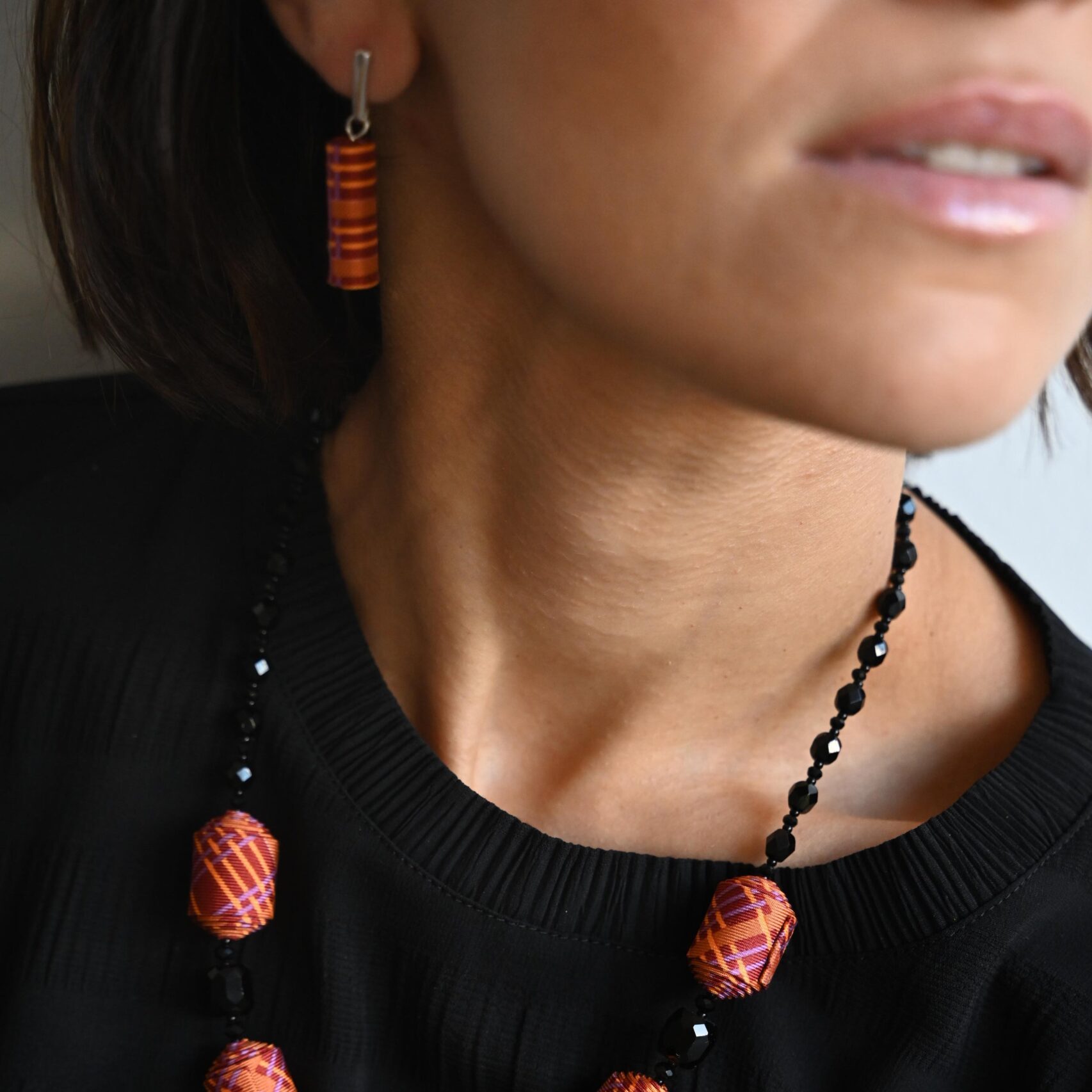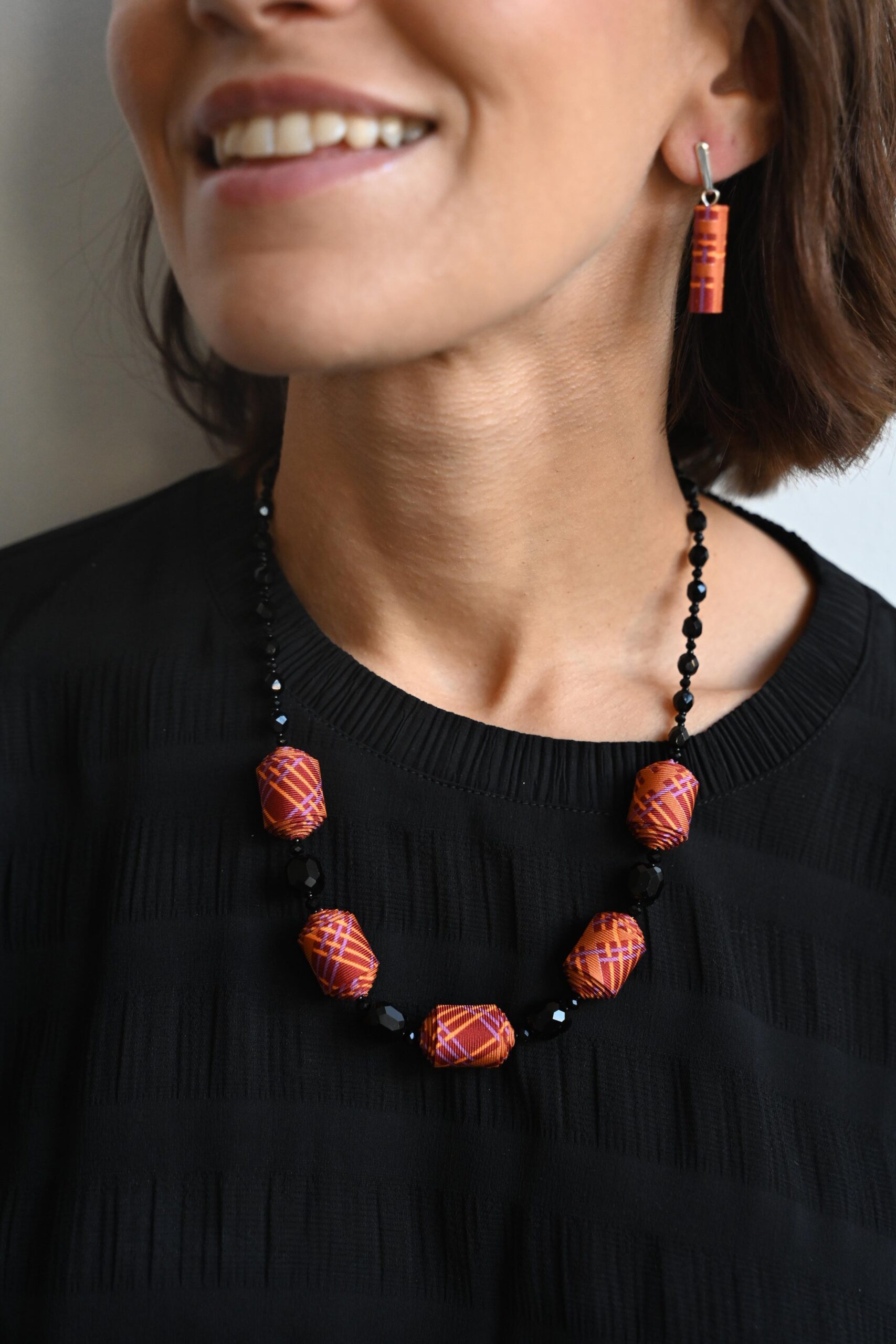 • Perles de soie créées avec une cravate en soie André Claude Canova