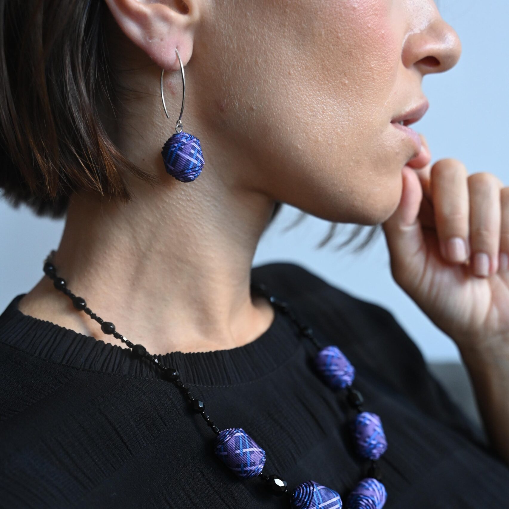 • Perles de soie créées avec une cravate en soie André Claude Canova