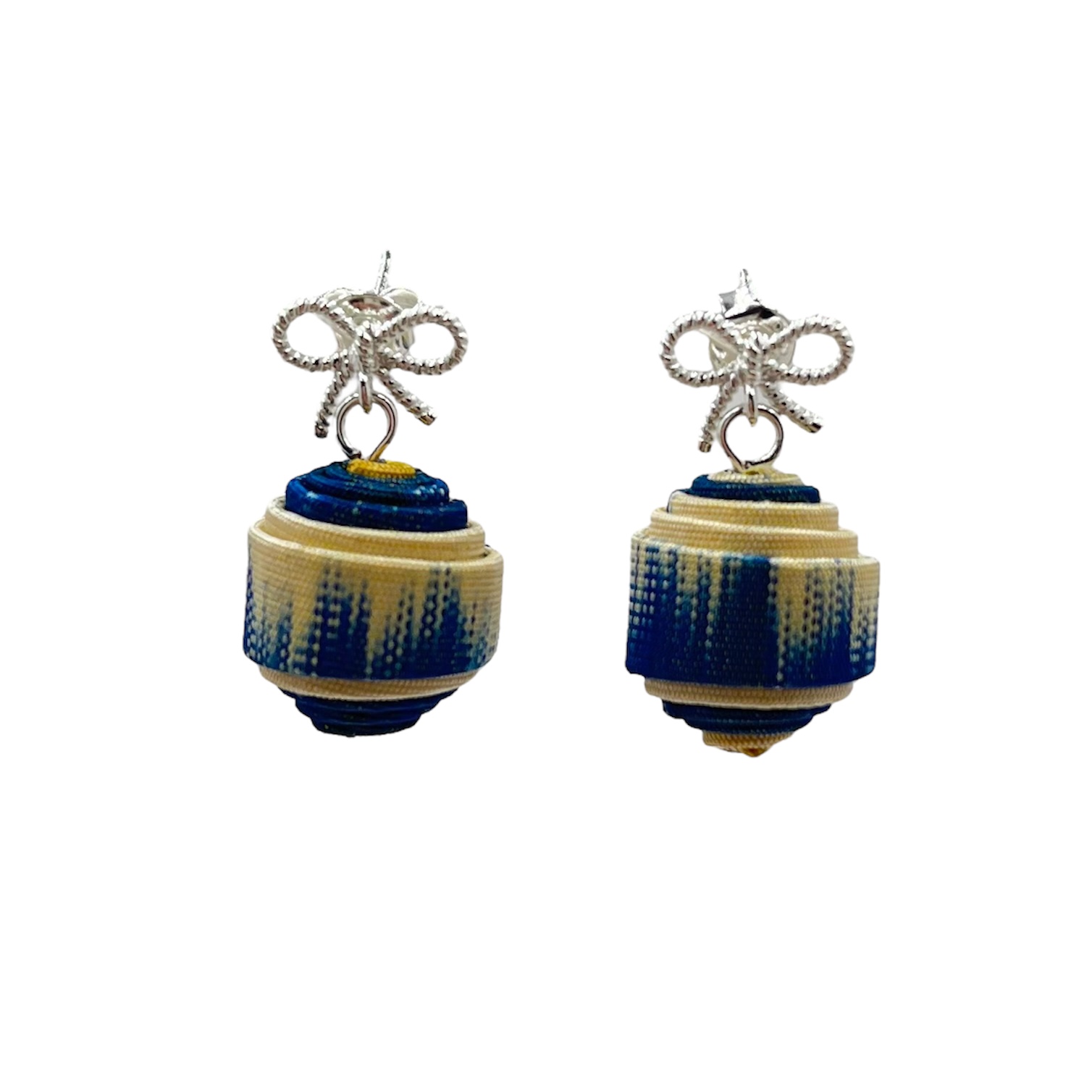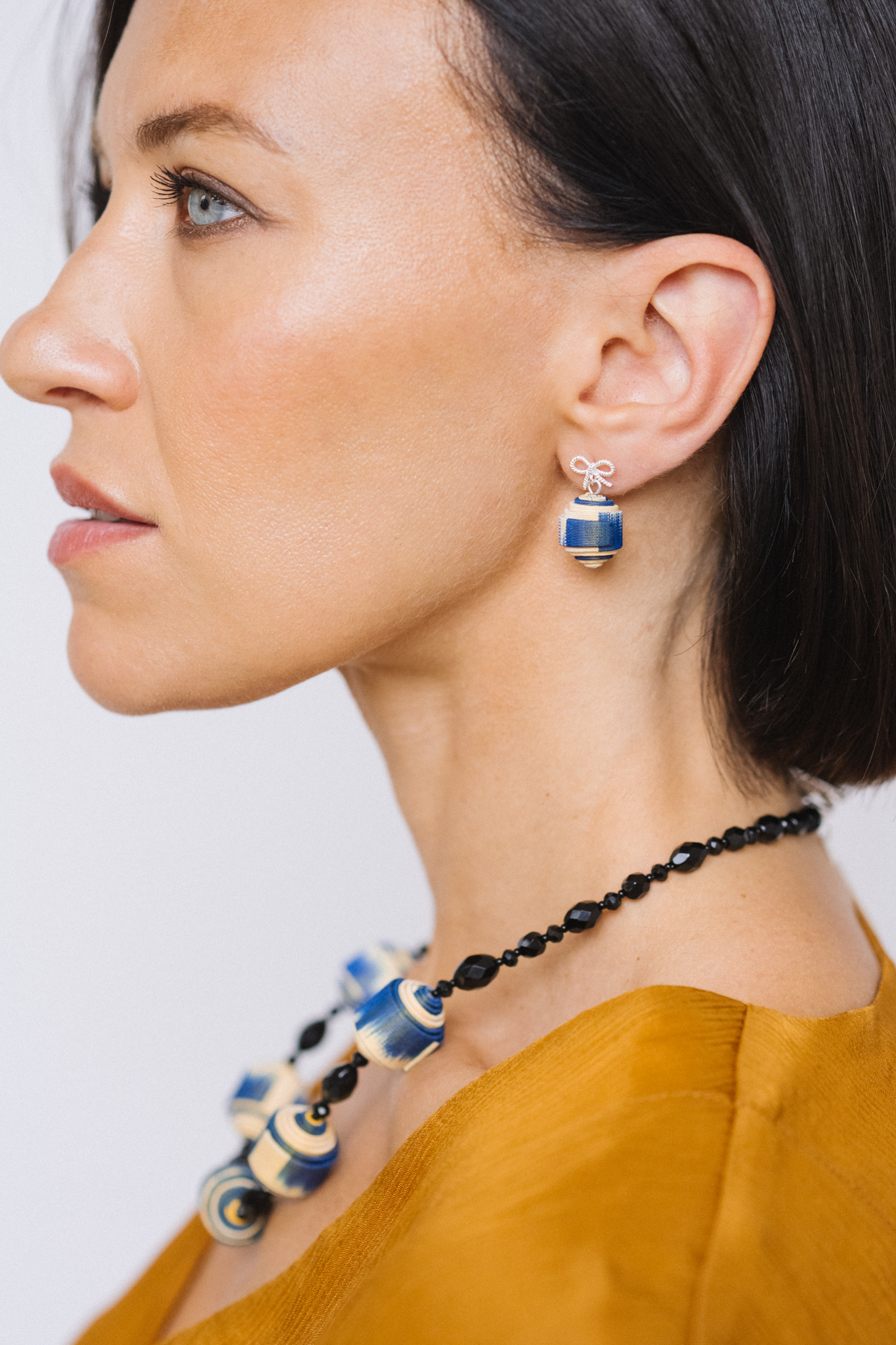• Perles de soie créées avec un ikat en soie d'Ouzbekistan