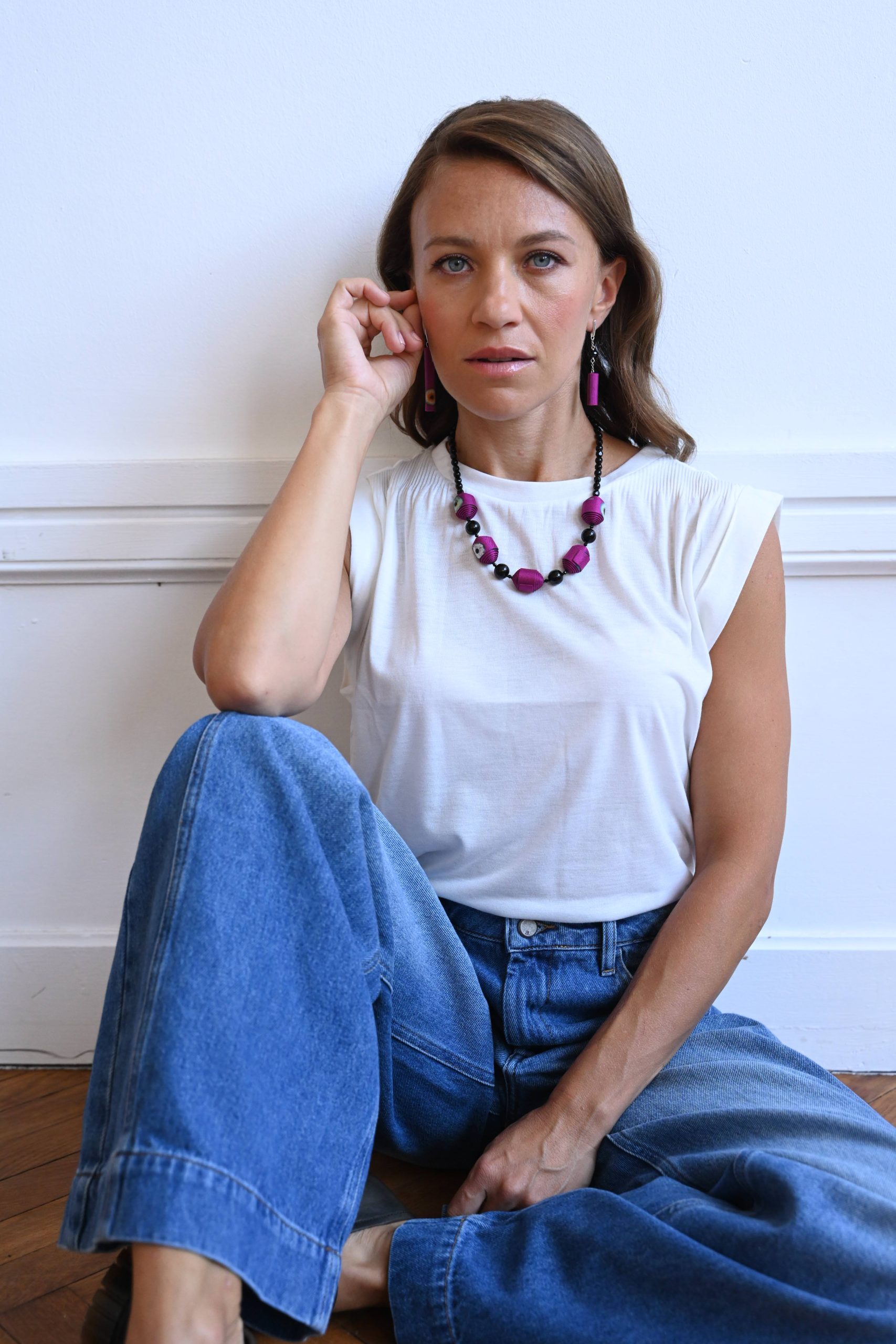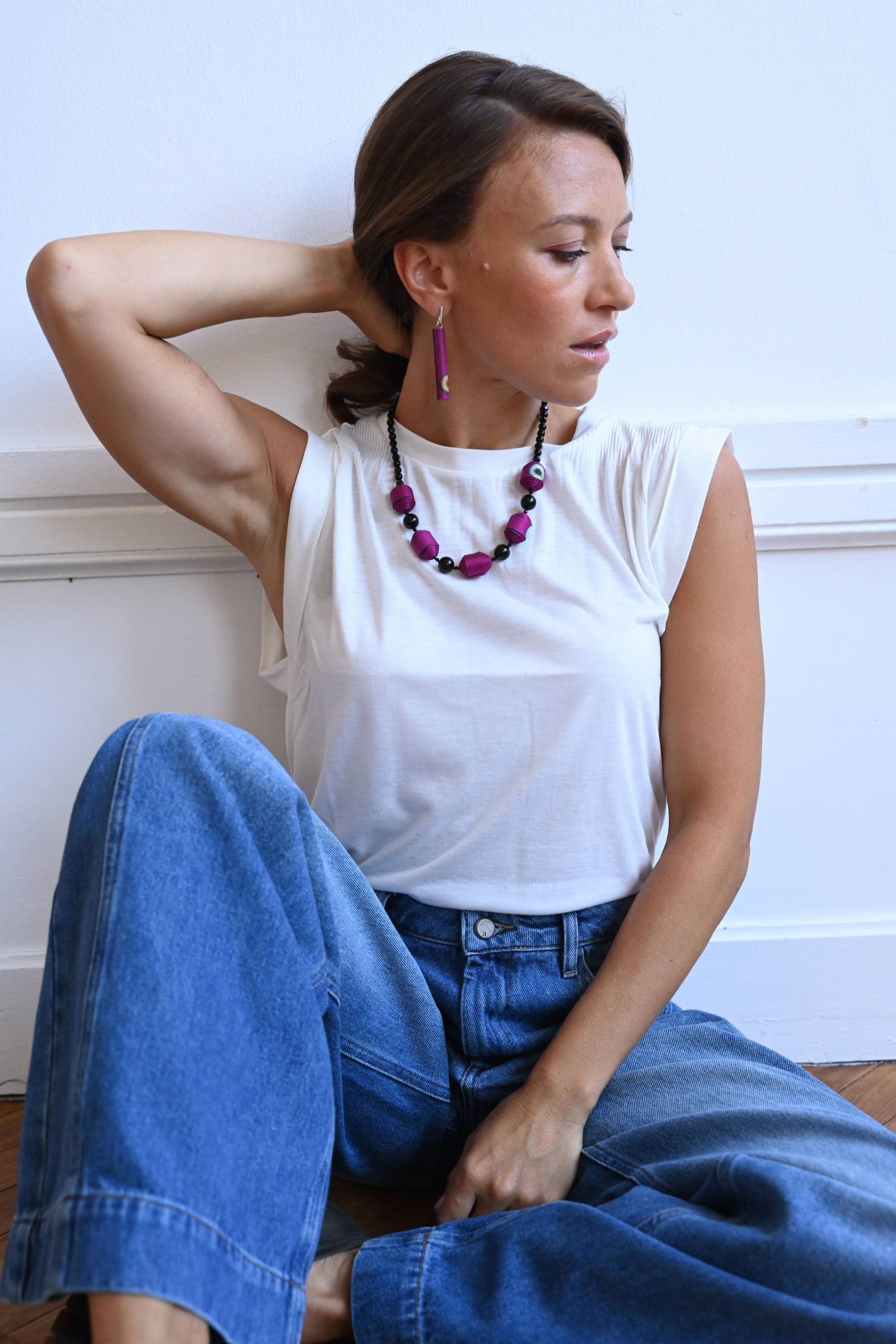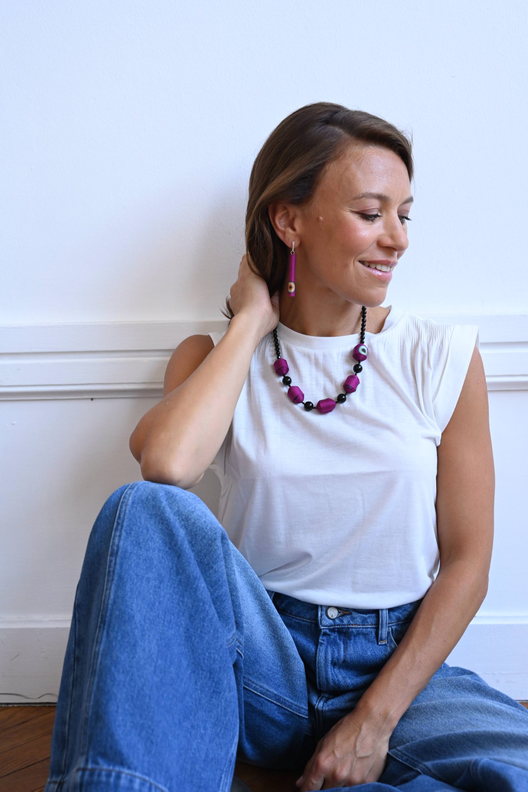 • Perles de soie créées avec un carré en soie AmesSoeurs collaboration Marie Fonterme
