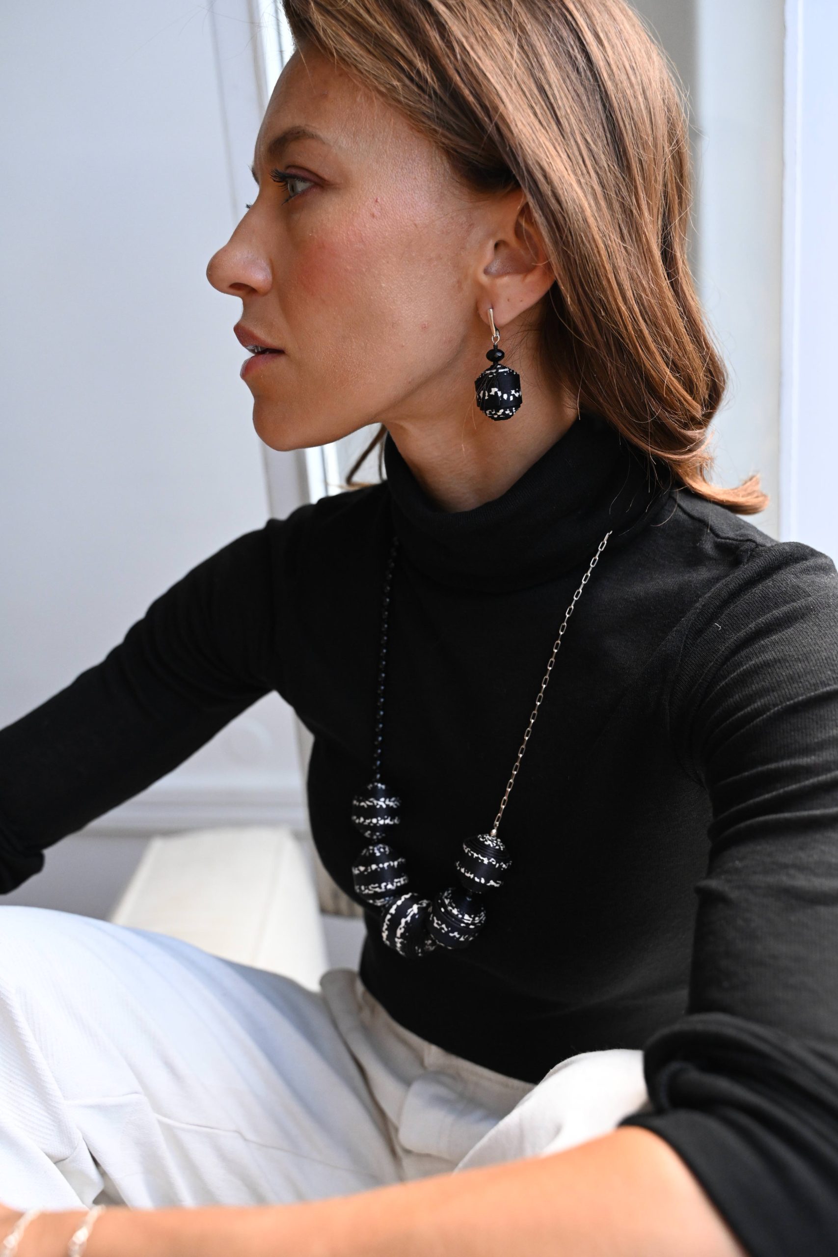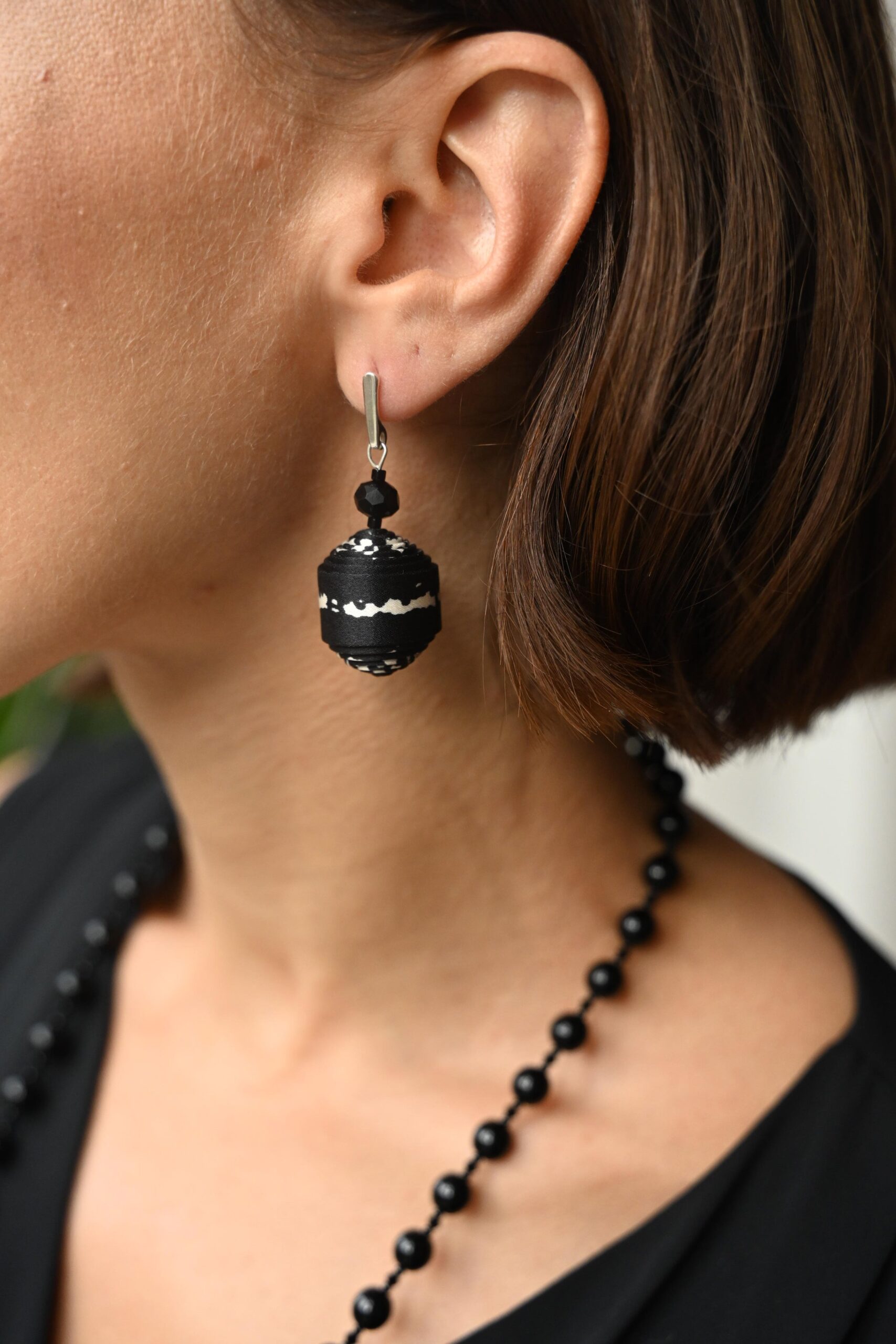 Classiques, intemporelles et élégantes, ces boucles d’oreilles éclairent votre visage et flattent la courbe de votre nuque. Le noir intense du cristal de Swarovski, apporte une vivacité et une énergie artistique à l’ensemble. Un cadeau pour celles qui aiment l’élégance.