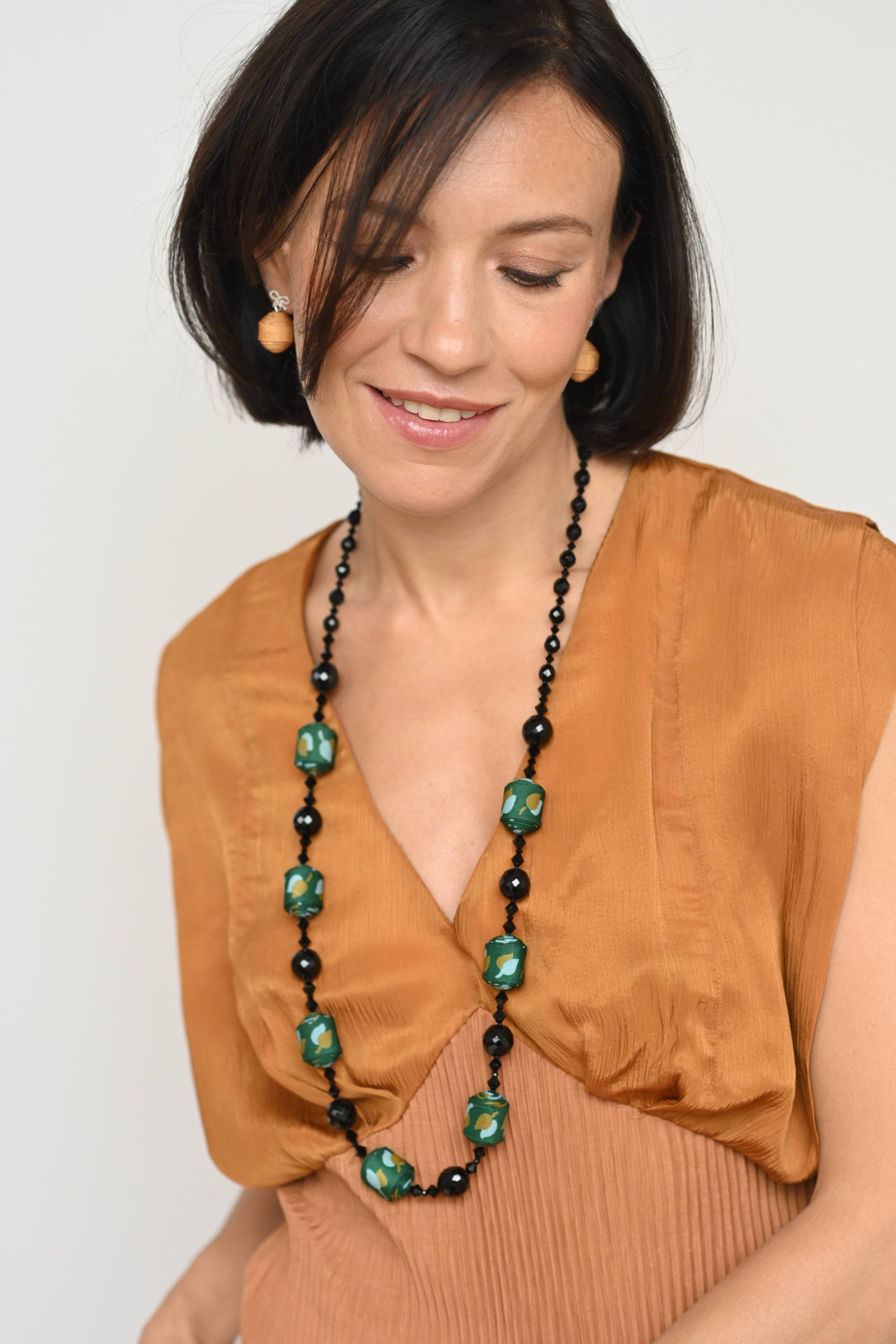 • Perles de soie créées avec l'intérieur de la pointe d'une cravate en soie Christian Dior