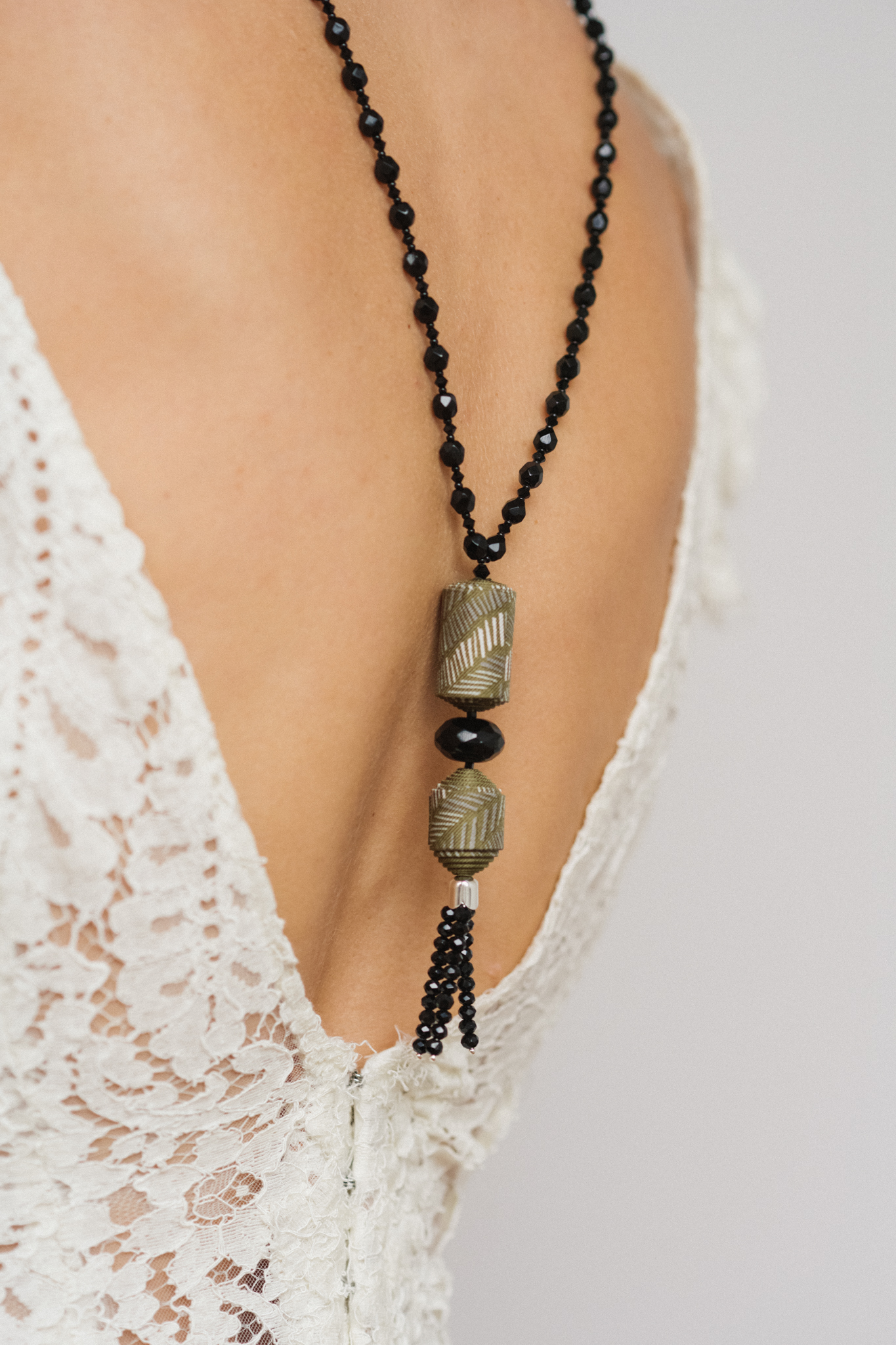 So chic ! L’équilibre parfait, l’harmonie de la soie et du cristal de Swarovski, un bijou inspiré des années 30 pour sublimer votre tenue de soirée et laisser éclore la poésie …