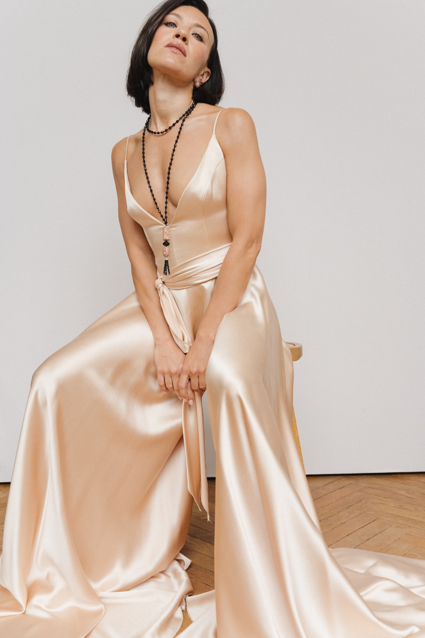So chic ! L’équilibre parfait, l’harmonie de la soie et du cristal de Swarovski, un bijou inspiré des années 30 pour sublimer votre tenue de soirée et laisser éclore la poésie …