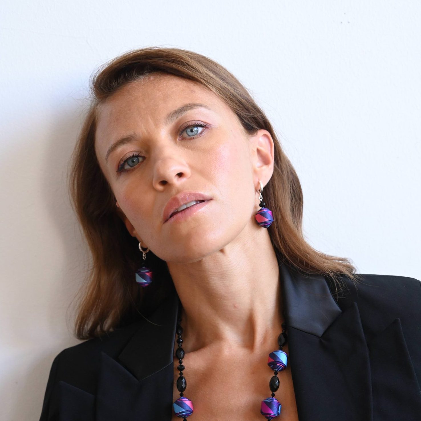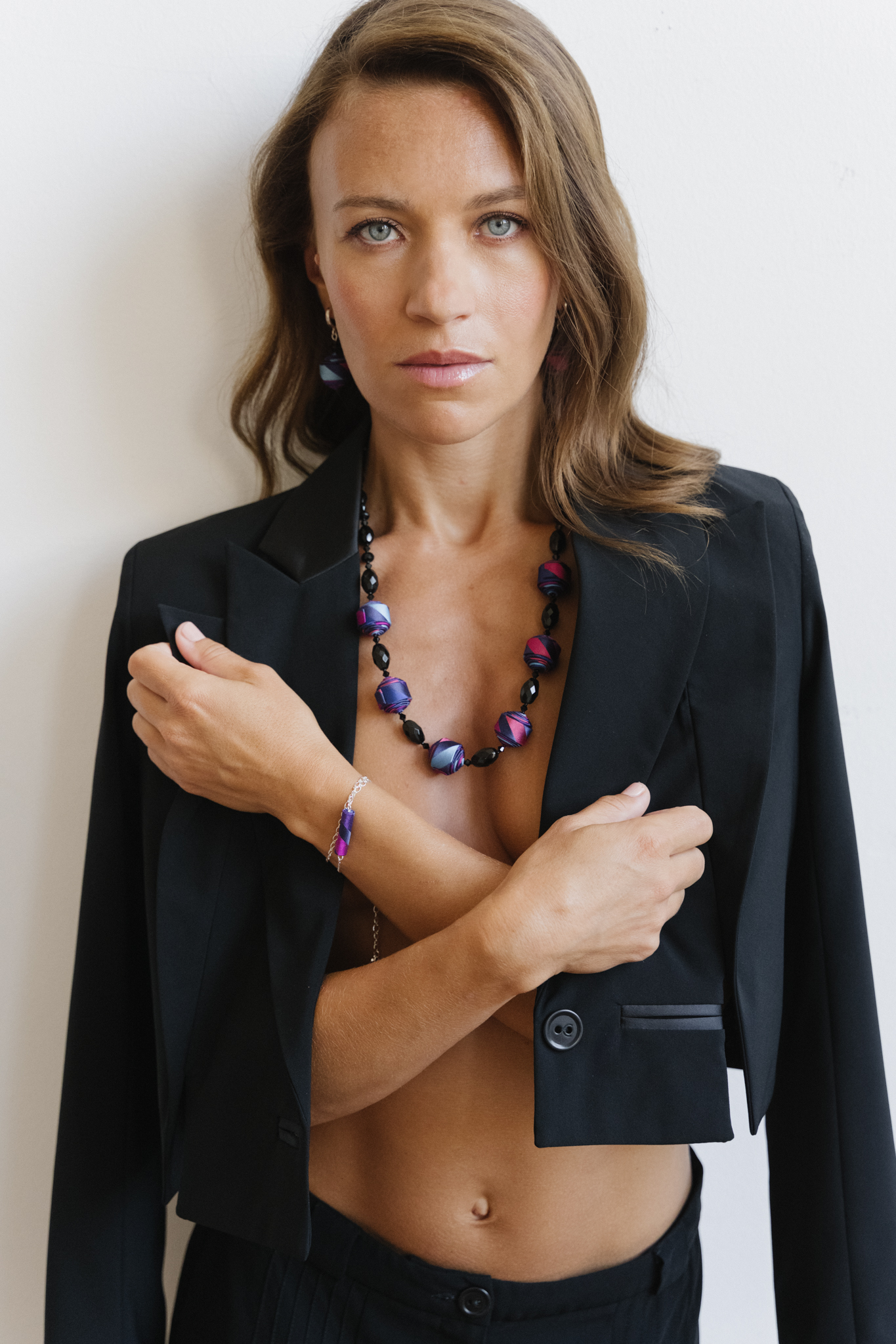• Perles de soie créées avec une cravate en soie Sonia Rykiel
