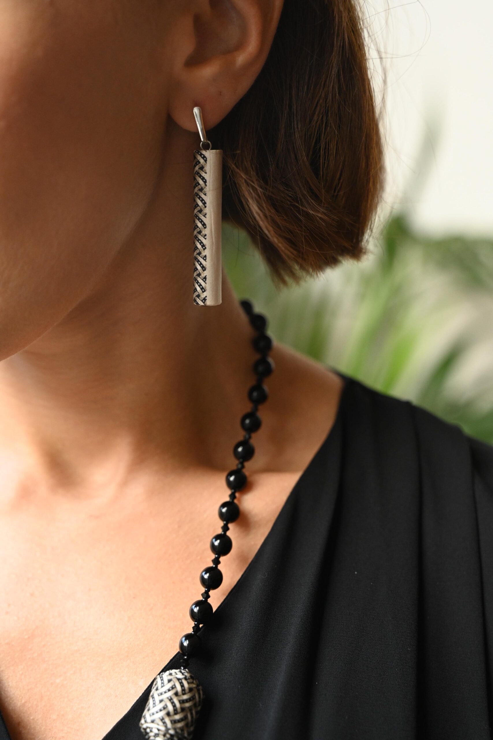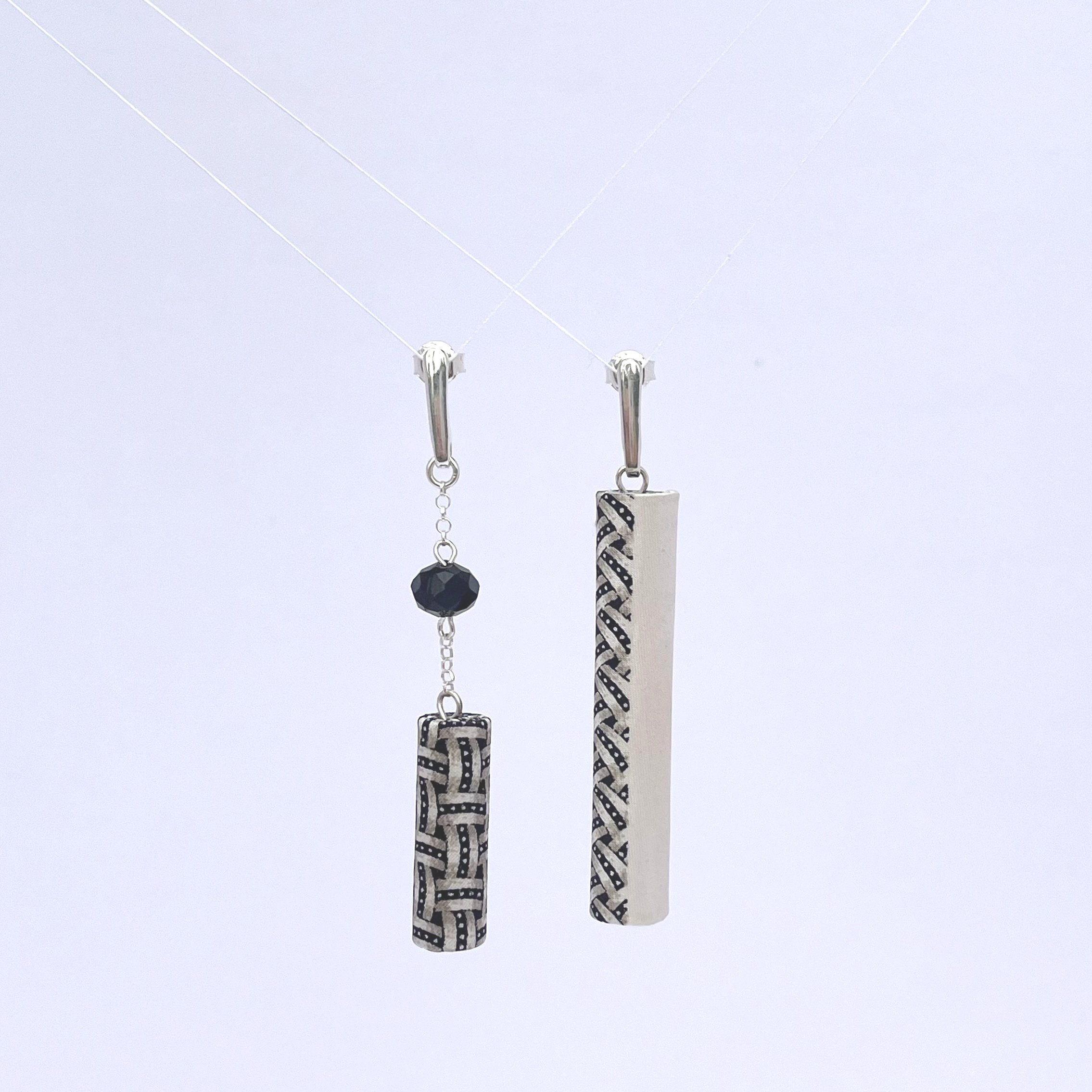 D’un côté, une baguette de soie élancée, de l’autre, sa miniature en suspension répond aux délicats reflets d’une perle de cristal. Des boucles très stylisées évoquant la légèreté des mobiles de Calder pour contrer la routine et rendre chaque jour plus original.