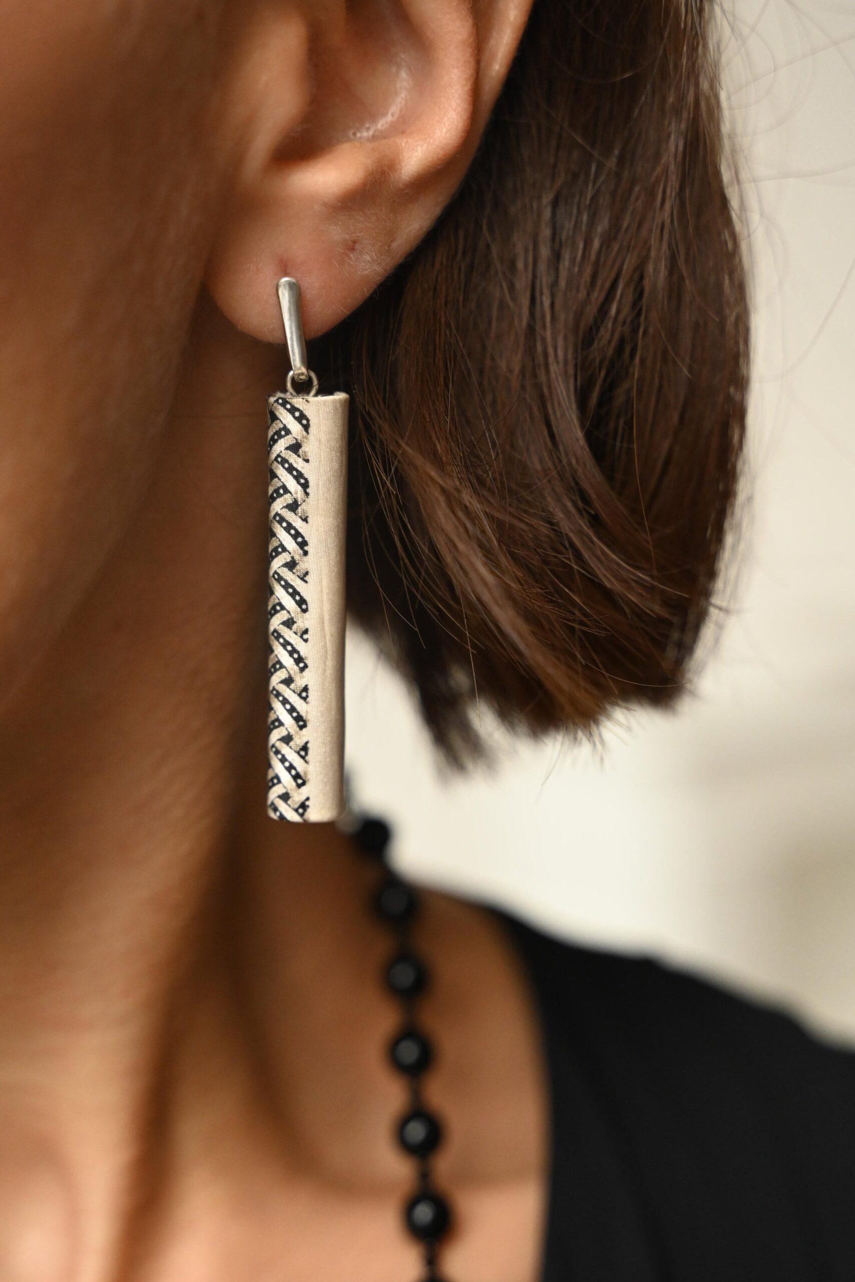 Des boucles d’oreilles asymétriques, élégantes et résolument contemporaines.