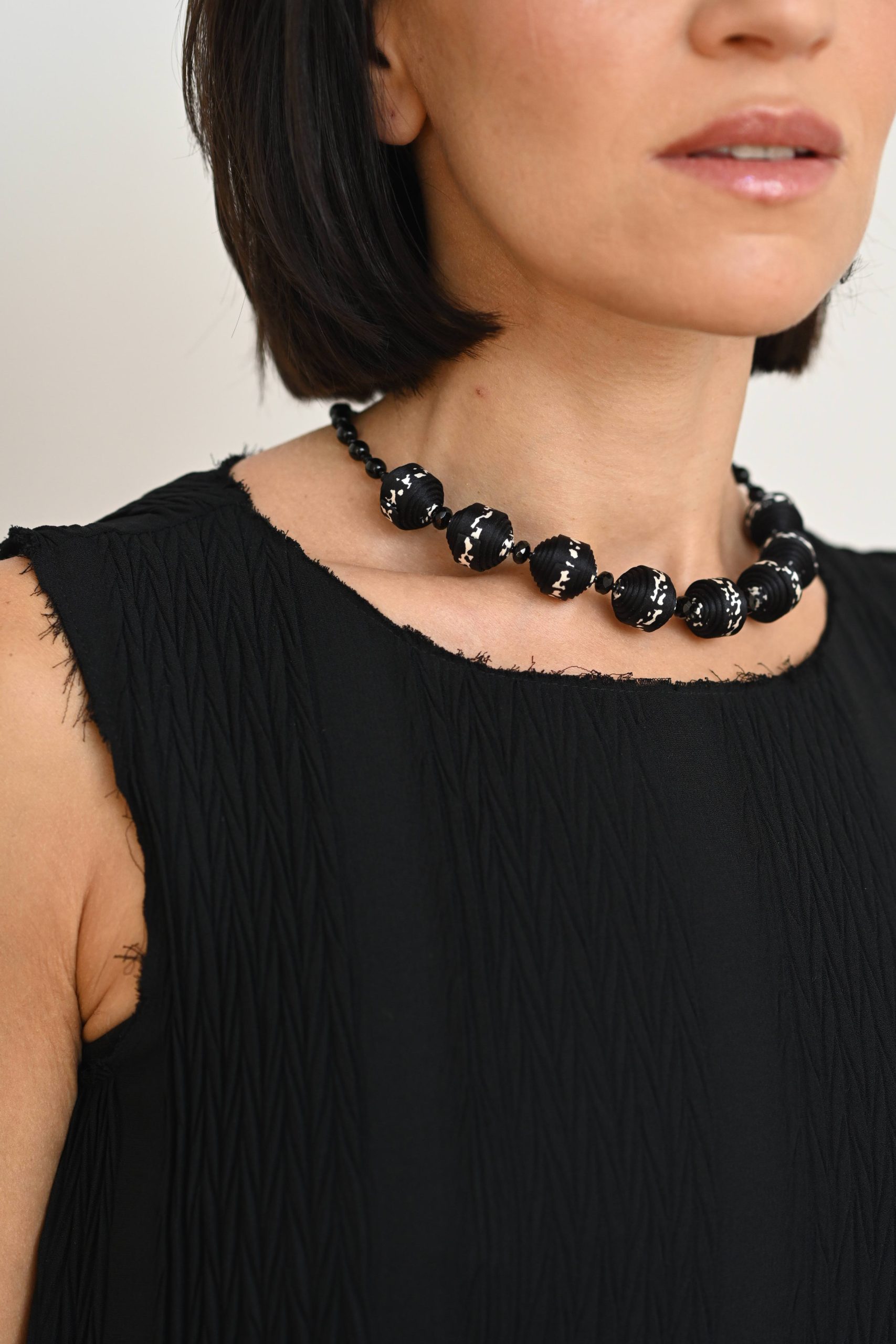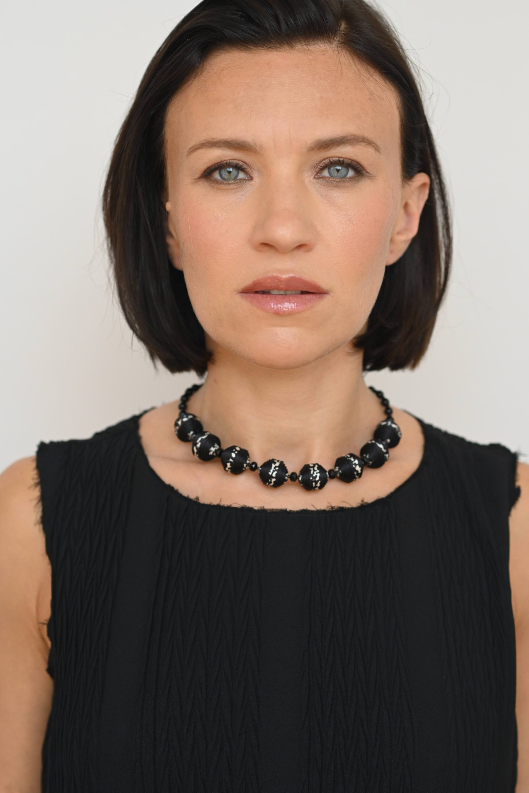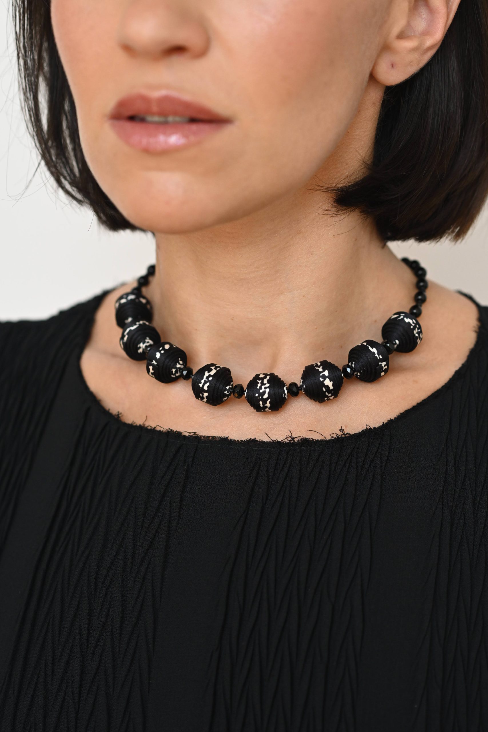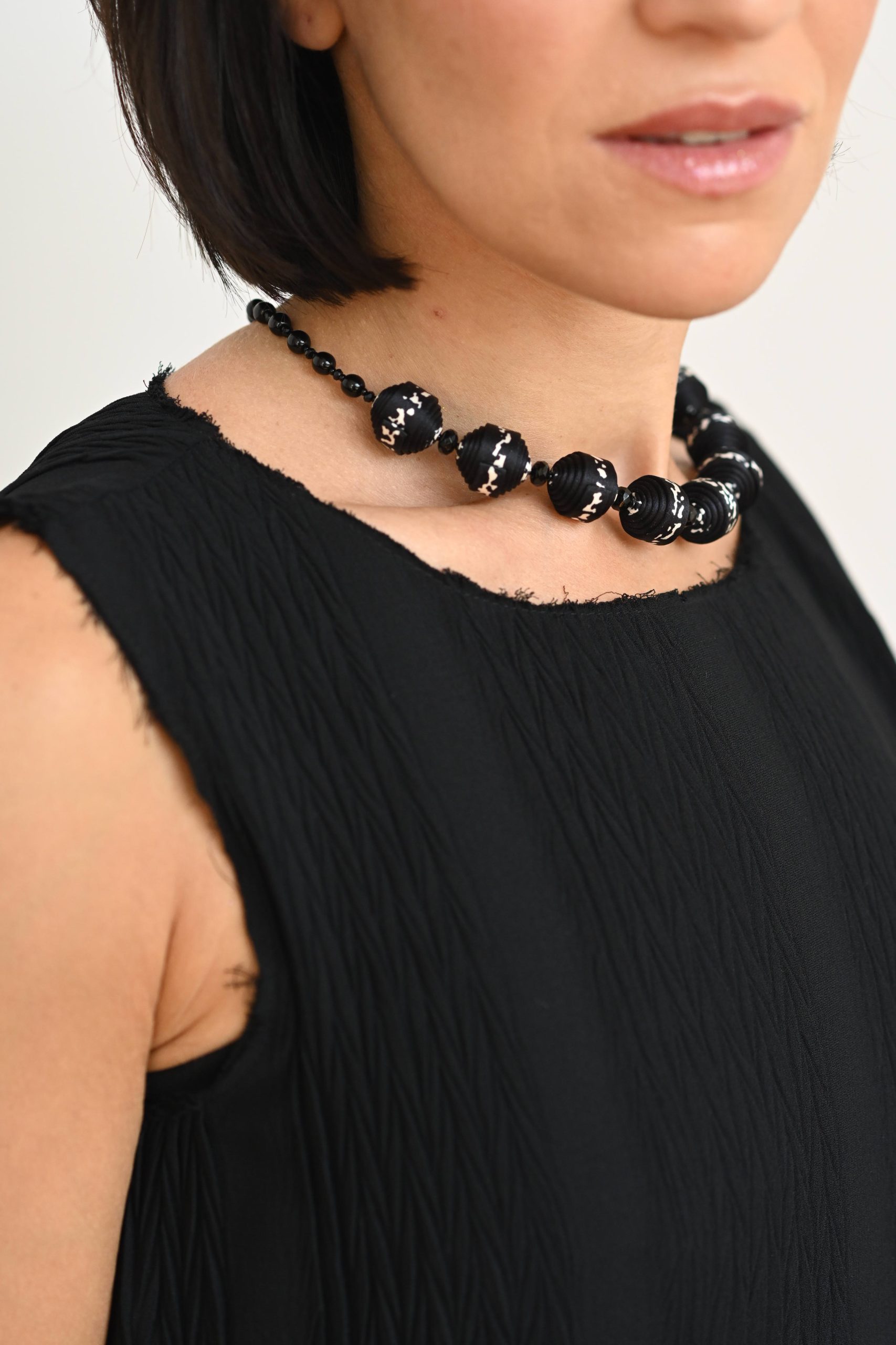 • Perles de soie créées avec un coupon de soie Chanel noir et blanc